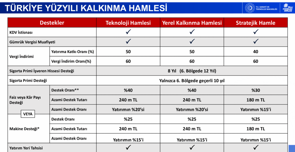 Teknoloji Hamlesi Programı kapsamında yayımlanan öncelikli ürün listesinde belirtilen yüksek teknolojili ürünlerin üretimine yönelik yatırımlar ile asgari 500 milyon TL tutarındaki yüksek teknolojili ürünlerin üretimine yönelik yatırımlar